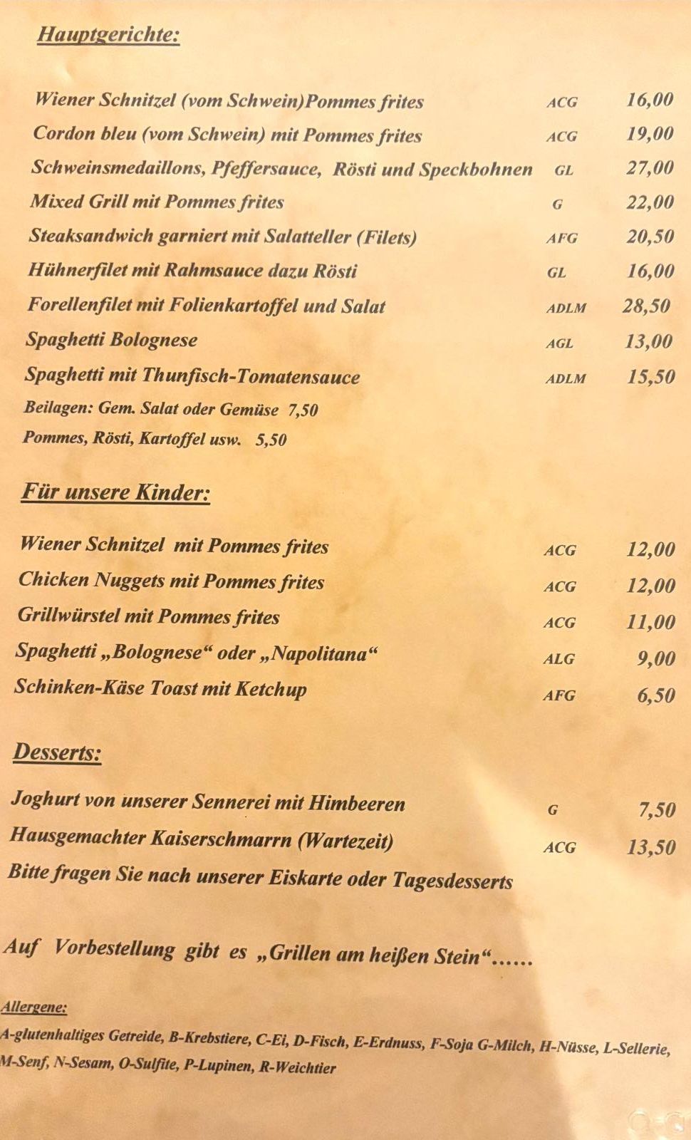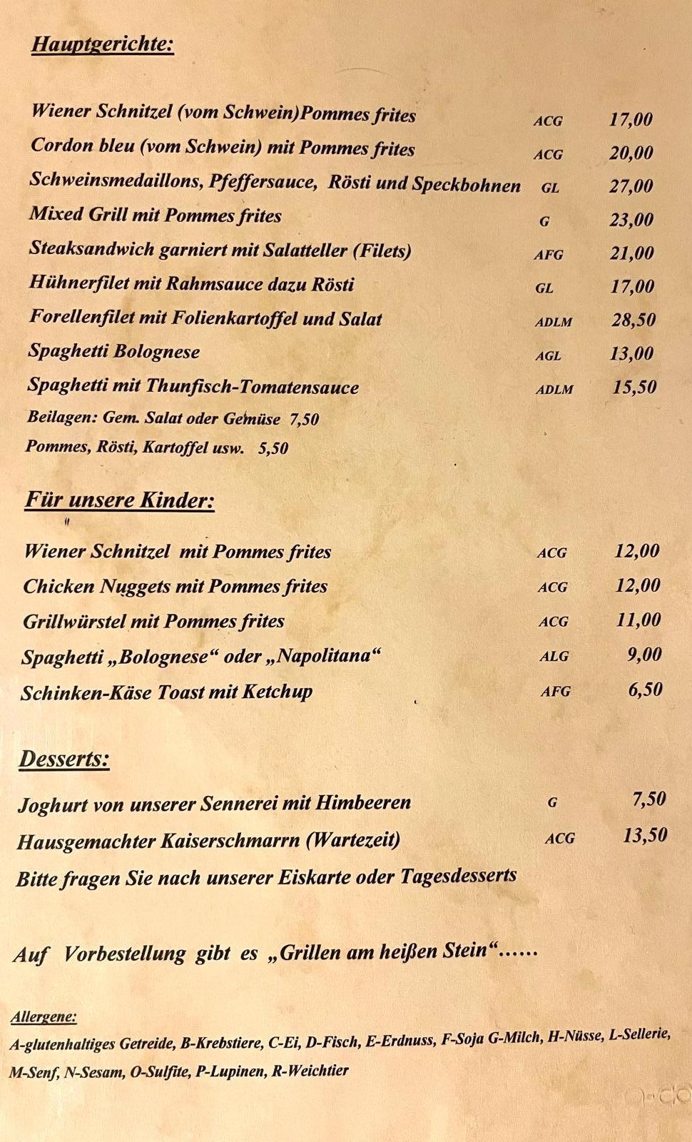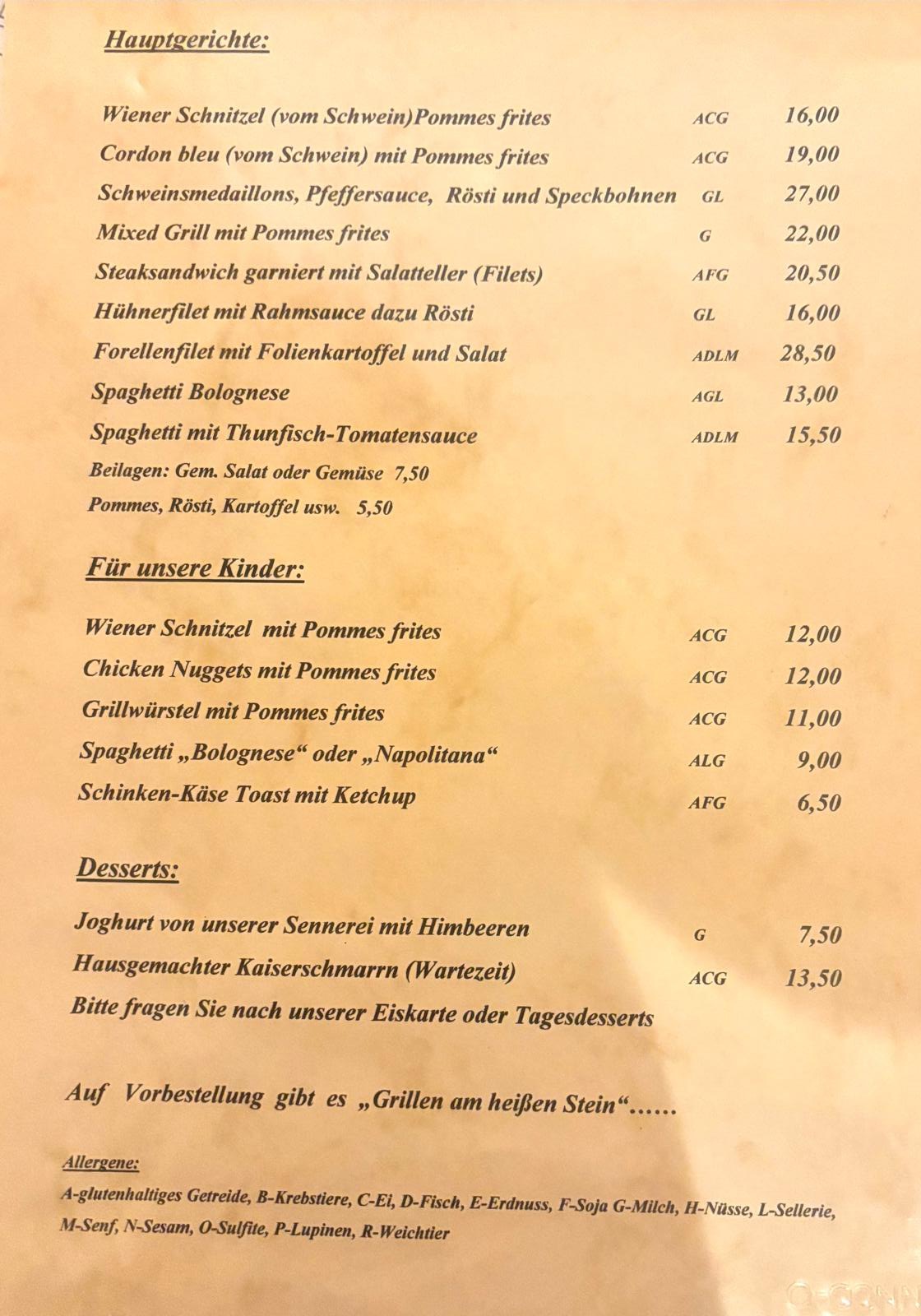Wenn Sie à la carte speisen, kommen Sie auch auf Ihre Kosten! Bei unserer täglich neuen Tageskarte, mit traditionellen Schmankerln und saisonellen Spezialitäten, treffen wir sicher auch Ihren Geschmack!