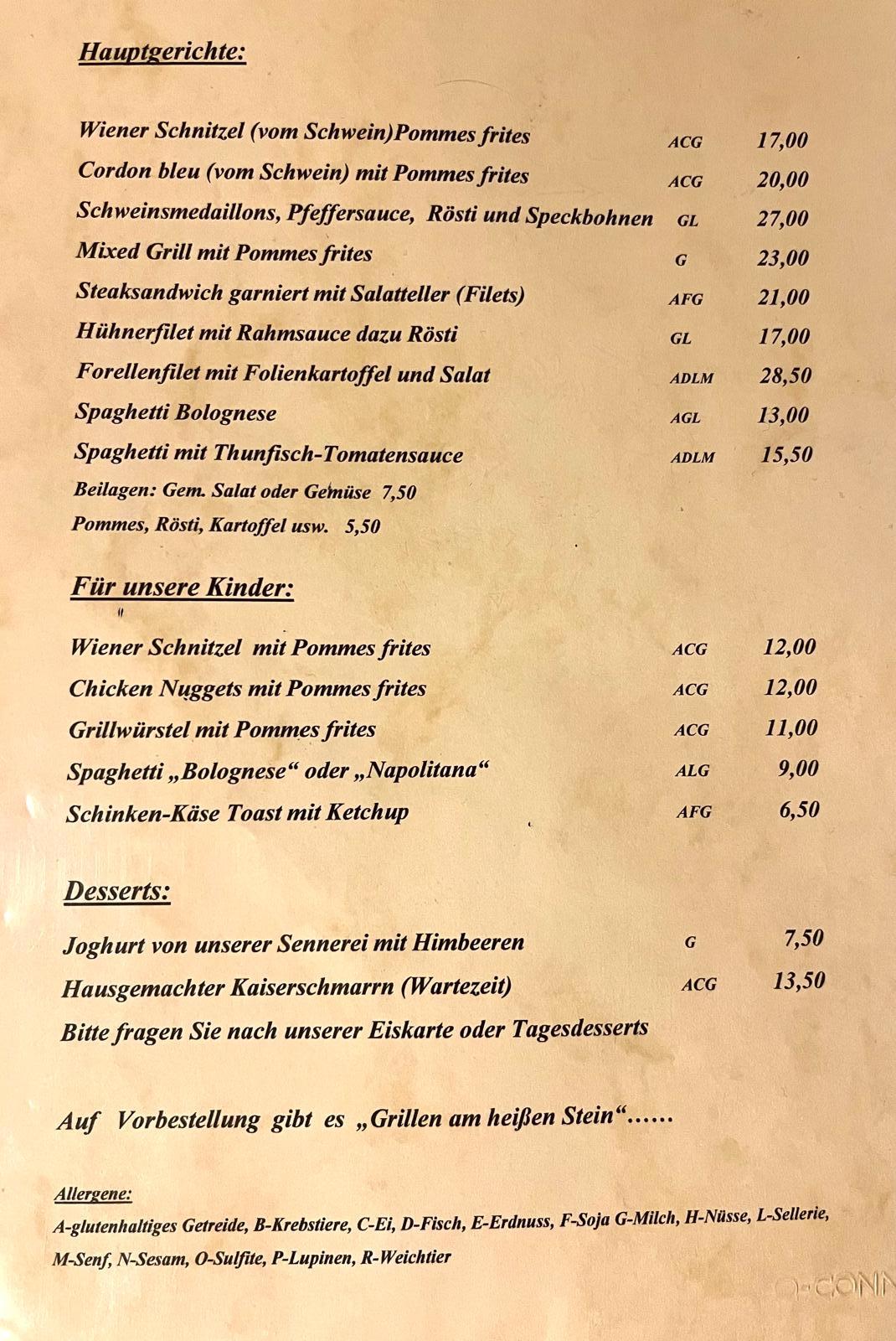 Wenn Sie à la carte speisen, kommen Sie auch auf Ihre Kosten! Bei unserer täglich neuen Tageskarte, mit traditionellen Schmankerln und saisonellen Spezialitäten, treffen wir sicher auch Ihren Geschmack!